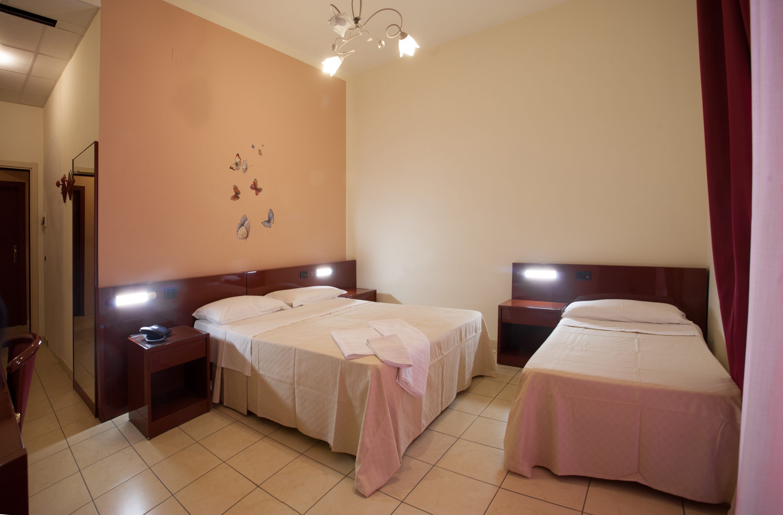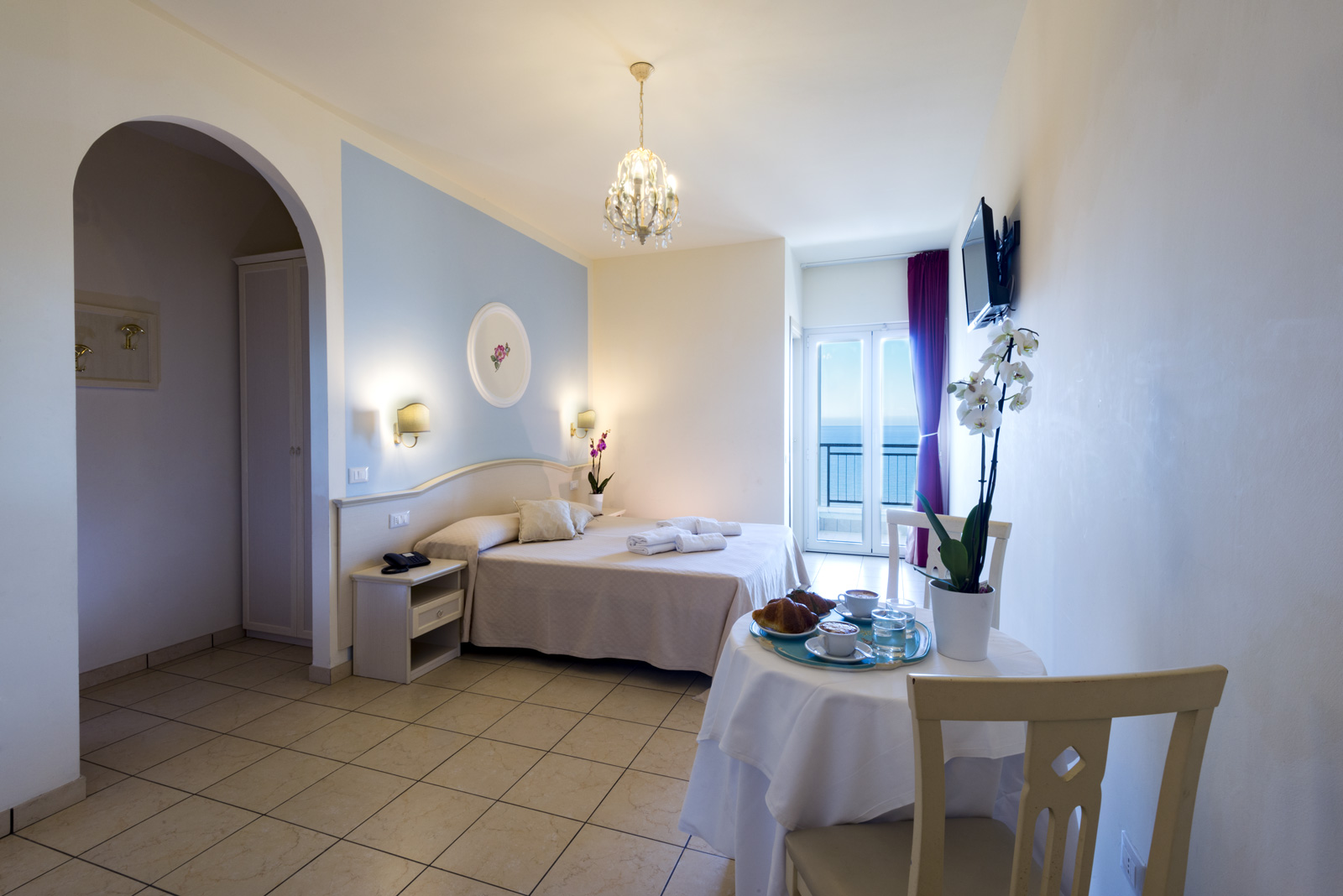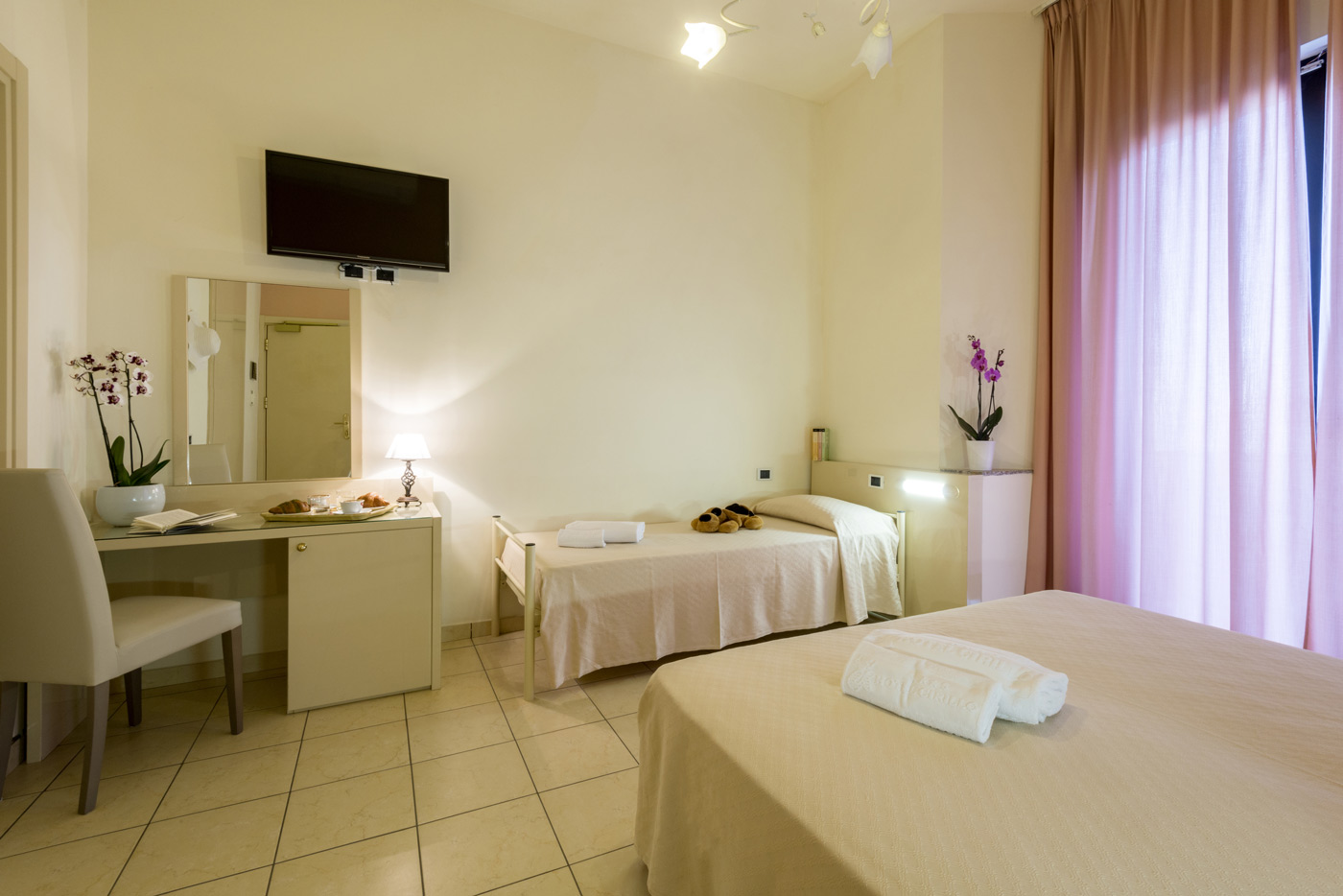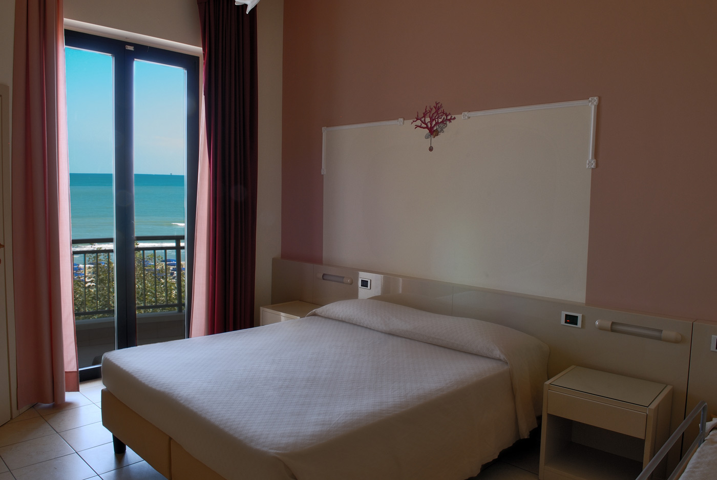 Ampie e funzionali, le nostre camere Standard sono dotate di finestra lato nord, tra il mare e la collina. 1 letto matrimoniale + 1 letto aggiunto/castello in camera, culla (soggetta a richiesta e disponibilità), aria condizionata (camera da letto), TV LCD, balcone, cassaforte, Wi fi gratis, box doccia, servizi, asciugacapelli, pulizia giornaliera, telefono con collegamento esterno, frigorifero. Finestra lato nord.