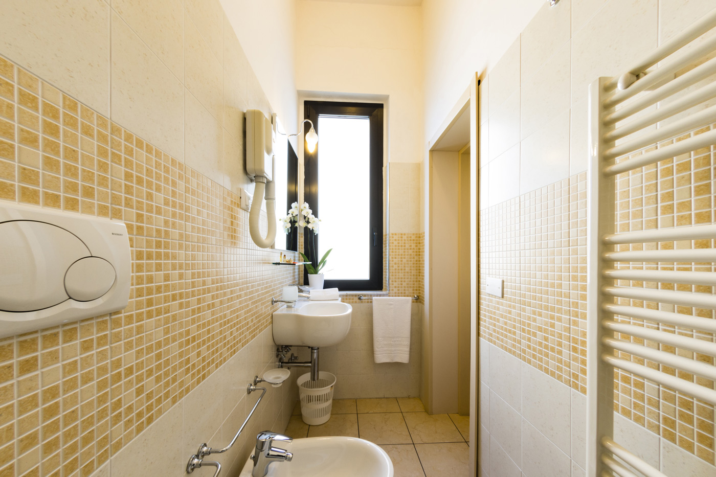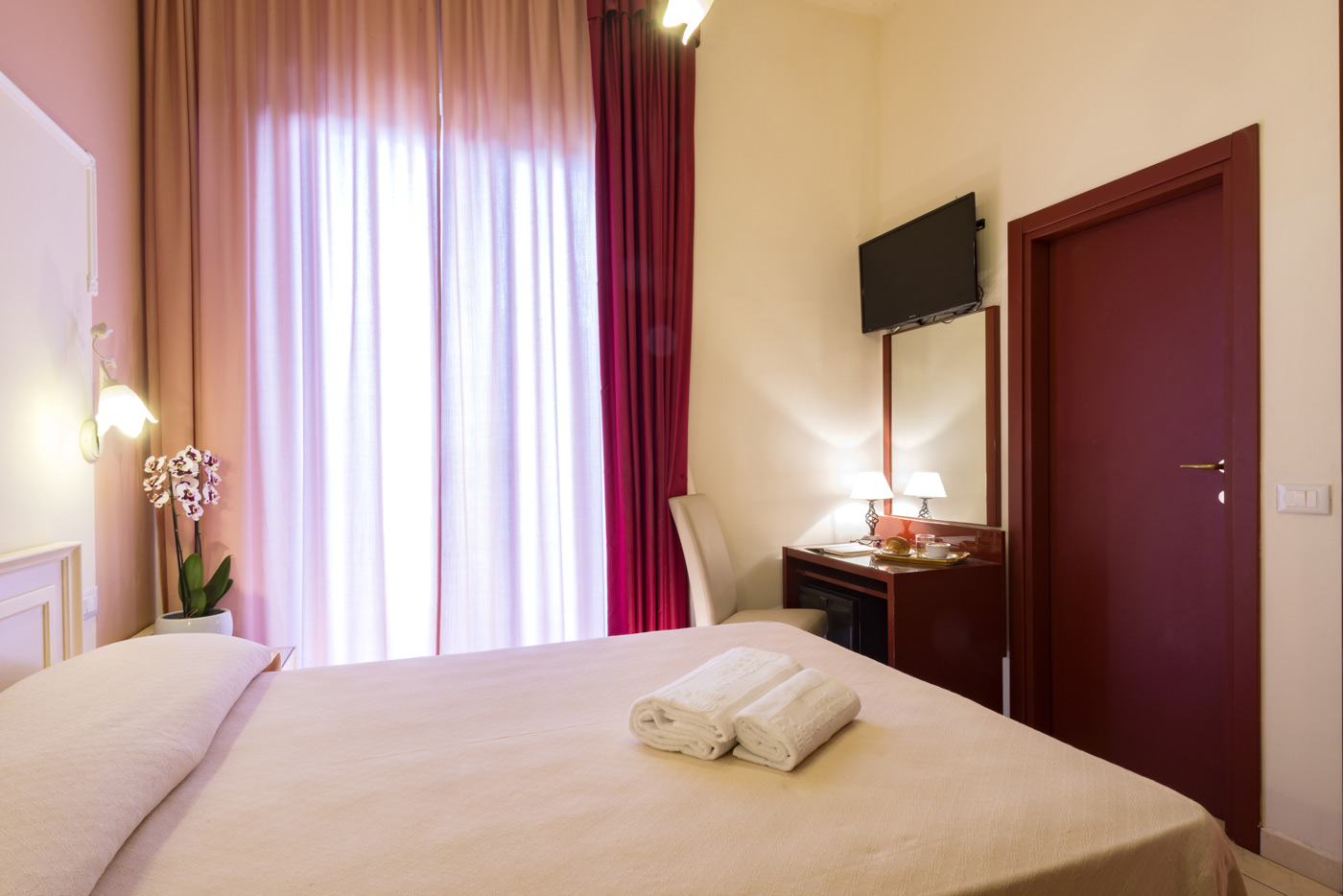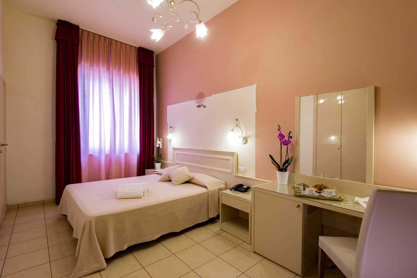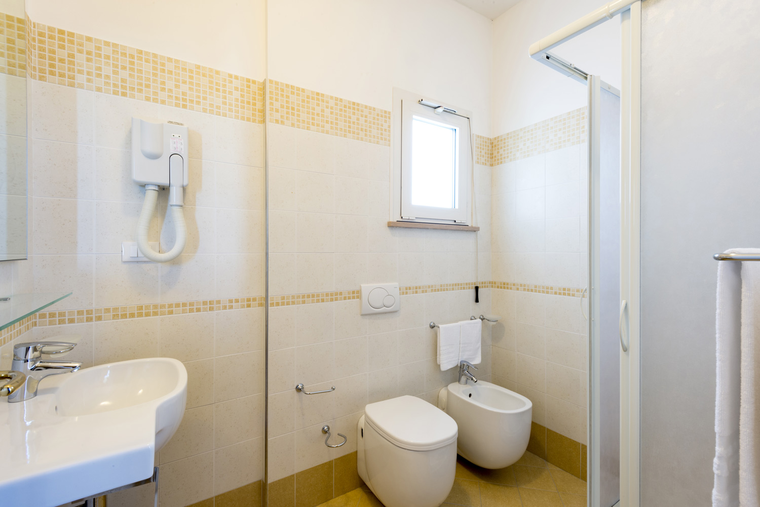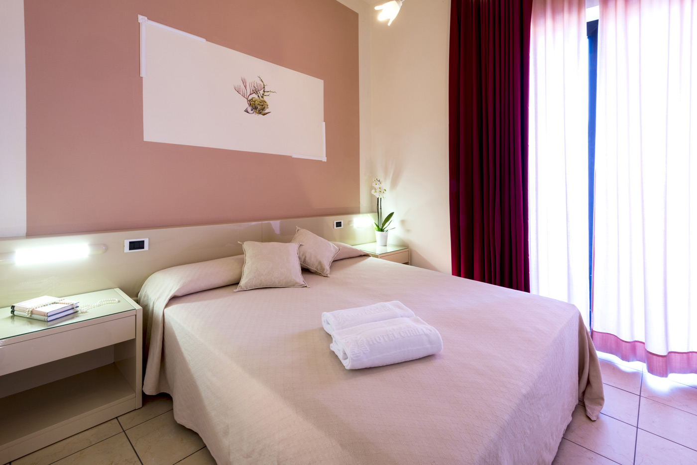 Ampie e funzionali, le nostre camere Standard sono dotate di finestra lato nord, tra il mare e la collina. 1 letto matrimoniale + 1 letto aggiunto/castello in camera, culla (soggetta a richiesta e disponibilità), aria condizionata (camera da letto), TV LCD, balcone, cassaforte, Wi fi gratis, box doccia, servizi, asciugacapelli, pulizia giornaliera, telefono con collegamento esterno, frigorifero. Finestra lato nord.