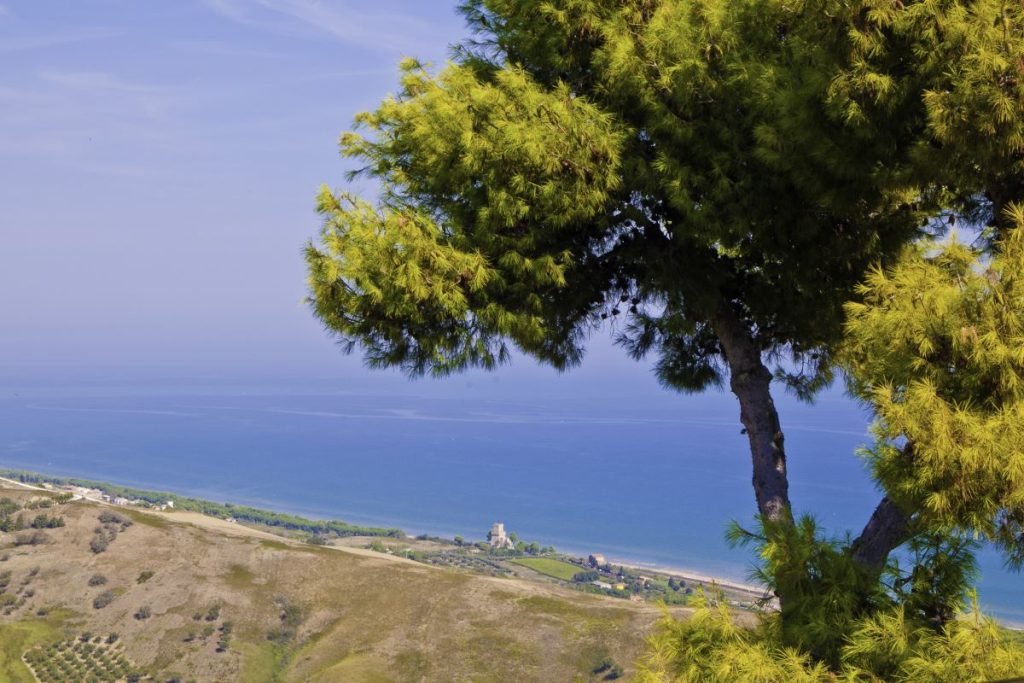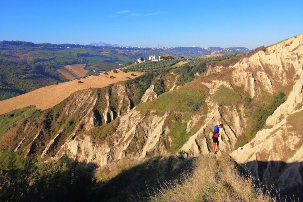 La vista non è quella che si gode salendo verso il borgo, il meraviglioso panorama sul mare, e neppure quella magnifica dal belvedere, che ospita la Pineta Castellaro (2.000 mq di verde tra querce, frassini e pini), ma sui calanchi, il magico fenomeno erosivo del terreno, ove 2 milioni di anni fa vi erano i fondali marini (oggi ricoperti da scarsa vegetazione ma ricchi di fossili, che l’argilla fa brillare di notte).