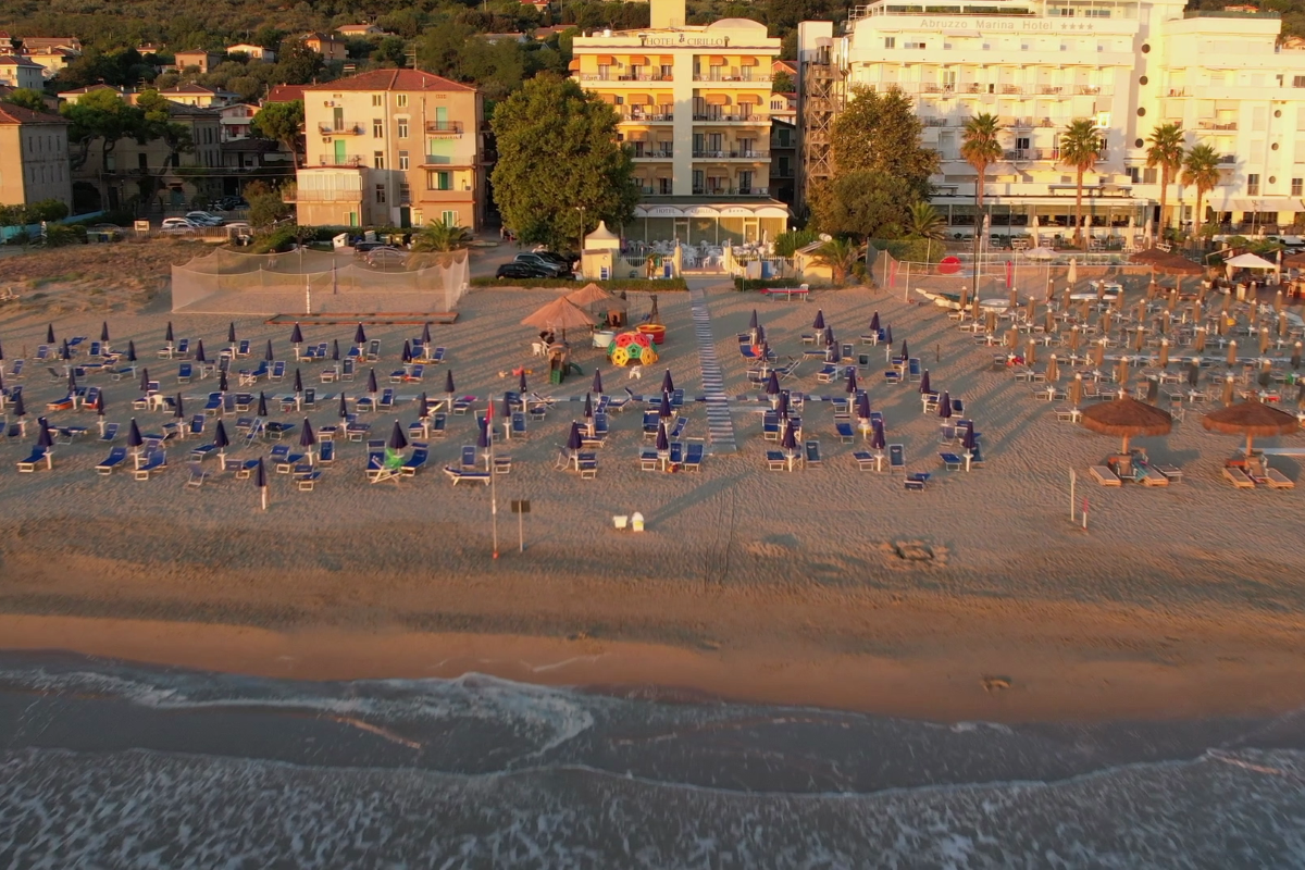 Spiaggia privata ad uso esclusivo dei clienti, con postazione assegnata, riservata e tranquilla con sole 4 file di ombrelloni per garantire spazio e comfort a tutti i nostri ospiti. Siamo nel Parco Marino Torre del Cerrano con mare basso adatto ai bambini e Bandiera Blu